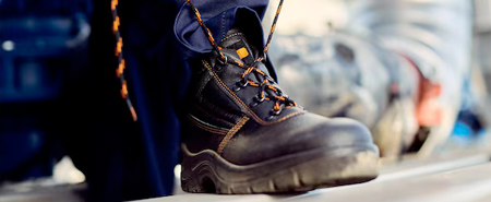 Botas e sapatos de segurança, calçados c/ bico de aço, cintos de segurança, trava-quedas e linhas de vida.
