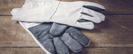 Luvas de diversos materiais (látex, malha de aço), mangotes e acessórios de proteção para os braços.