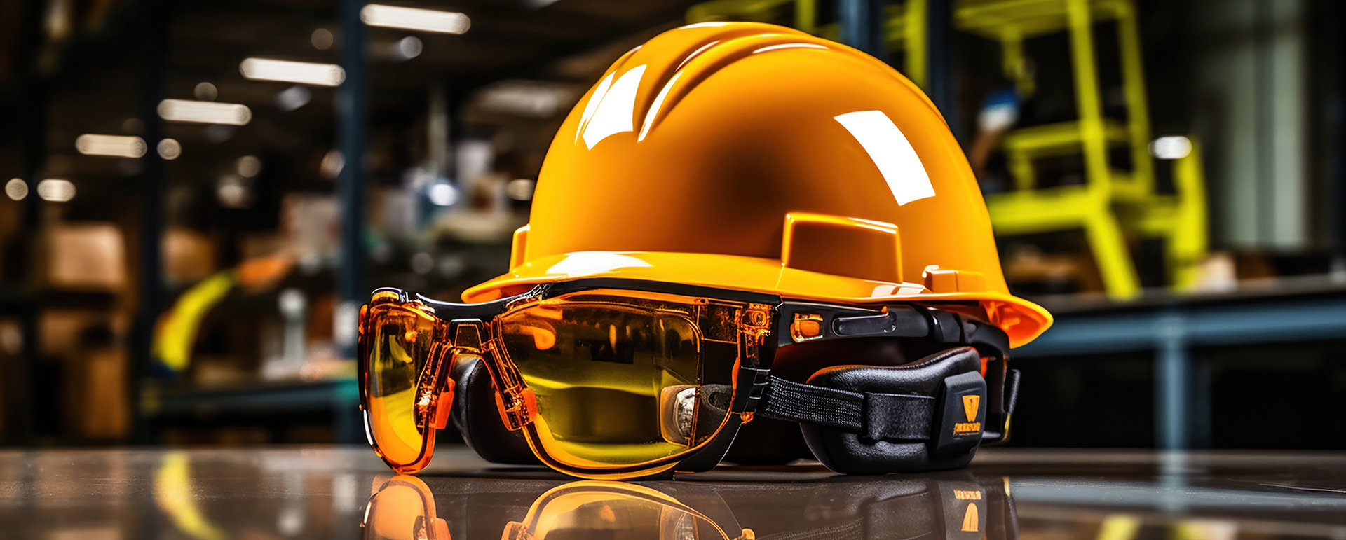 Capacetes, óculos de proteção, protetores faciais, abafadores de ruído, protetores auriculares.